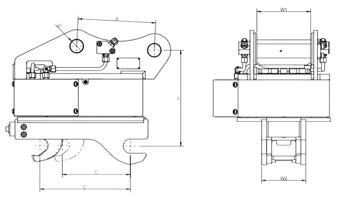 機械式クイックカプラのため、専用の油圧回路、電気回路は不要